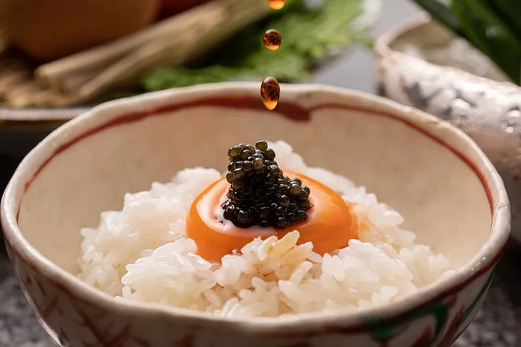 ラグジュアリーホテルの極上卵かけご飯 ~「旬房米」と「旬房オリジナルラベル 国産キャビア」でいただく”…