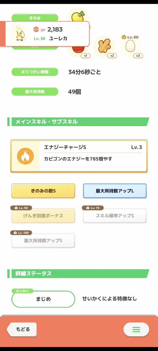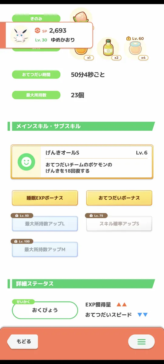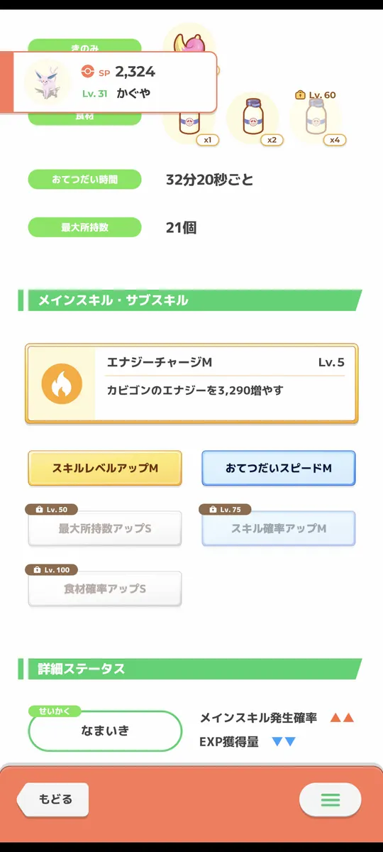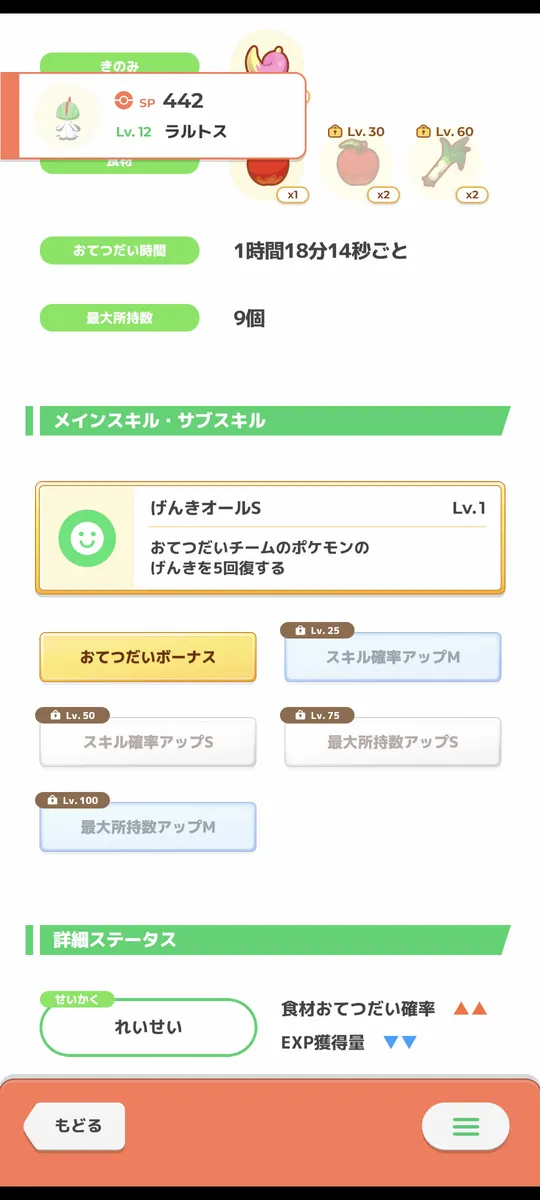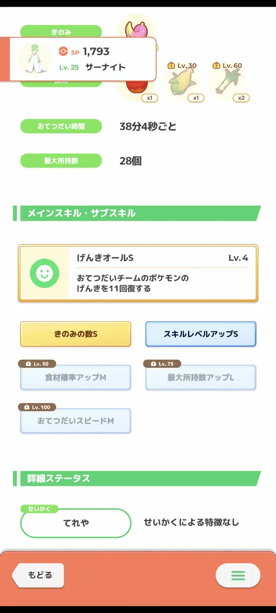 きのみSスキルレベルアップSの即戦力ラピスラズリ用サブヒーラーサーナイトとは別に、おてつだいボーナス、スキル確率アップMの汎用ヒーラーラルトスもお迎えできた。長く続けてきたヒーラー厳選も流石にここで終了としていいだろう。次はメインスキルのタネを毎月交換し、集めないといけない。