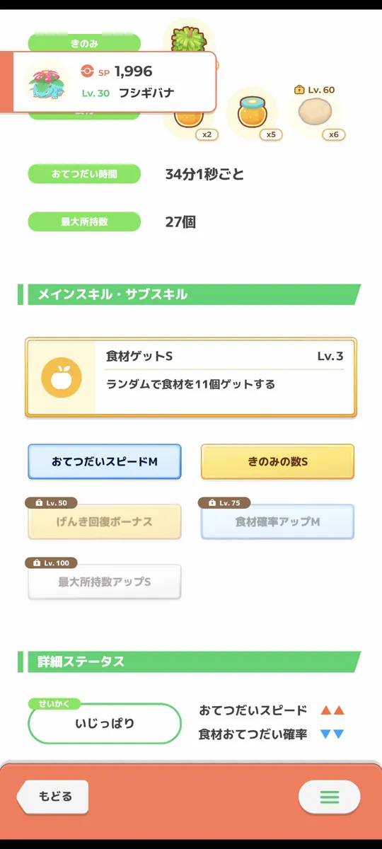Lv30になってオイルが開放され、あまいミツが少なくなってしまったが、フシギバナがいるのでラピスラズリにおいてはまったく問題にならなかった。今週もスキル発動回数上振れお願いします。
