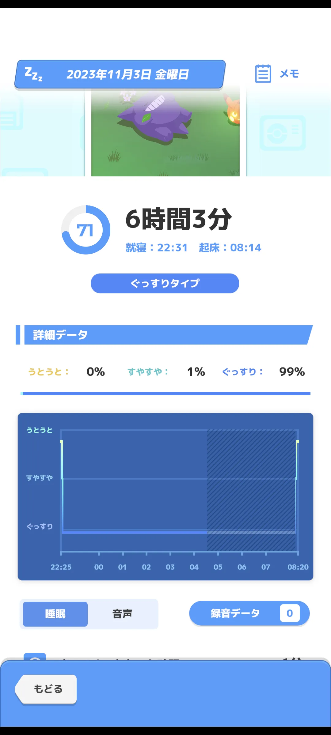ただし、長時間ぐっすり判定を受けると補正されて以下のようなことになるので気をつけましょう。