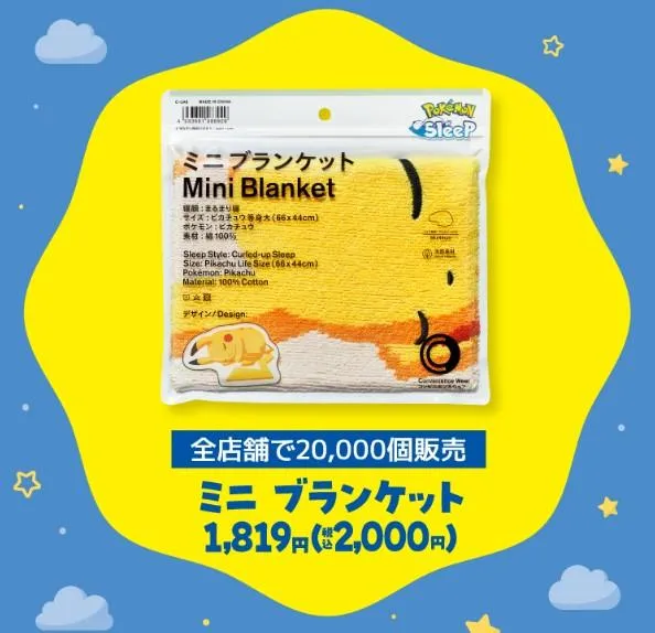 「ポケモンスリープコラボ ミニ ブランケット ピカチュウ」 価格:2000円(全店舗で2万個販売)