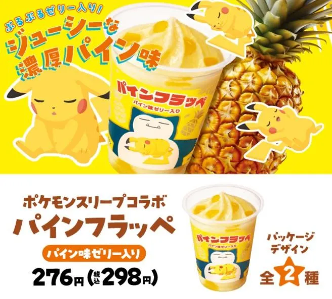 パイン果汁を19%使用し、ぷるぷるとした食感のパイン味ゼリーが入ったフラッペ。初夏らしい爽やかな味わいが楽しめるコラボ商品です。