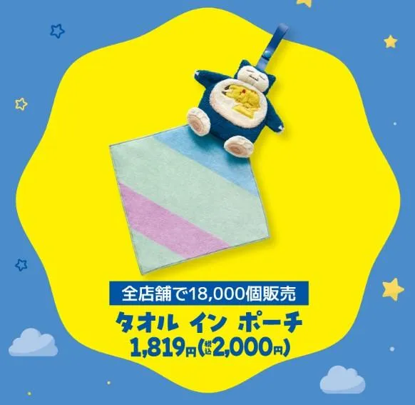 「ポケモンスリープコラボ タオル イン ポーチ カビゴン&ピカチュウ」 価格:2000円(全店舗で1万8000個販売)