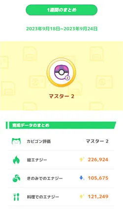 「ワカクサ本島」 「ドリンク・デザート」 「フィラ・チーゴ・べリブ」 先週の結果です。 ワカクサ本島は安定してマスターいけるようになったかな? 今週は再びグッドスリープデー(9/28木~…