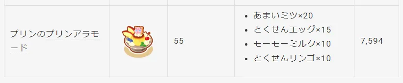 ニンジャ系がエナジーを稼げる料理の代表格ですが、デザート・ドリンク週にはニンジャ系がなく、代わりがプリンのプリンアラモードで一段エナジーが落ちるんですよね。もちろん30台のレシピを作り続けるならそれほど差はありませんが、前週から全食材をある程度貯めて翌週月曜からスタートダッシュするぞ!と意気込んで臨むと少しがっかりします。今若干落ち込んでる。