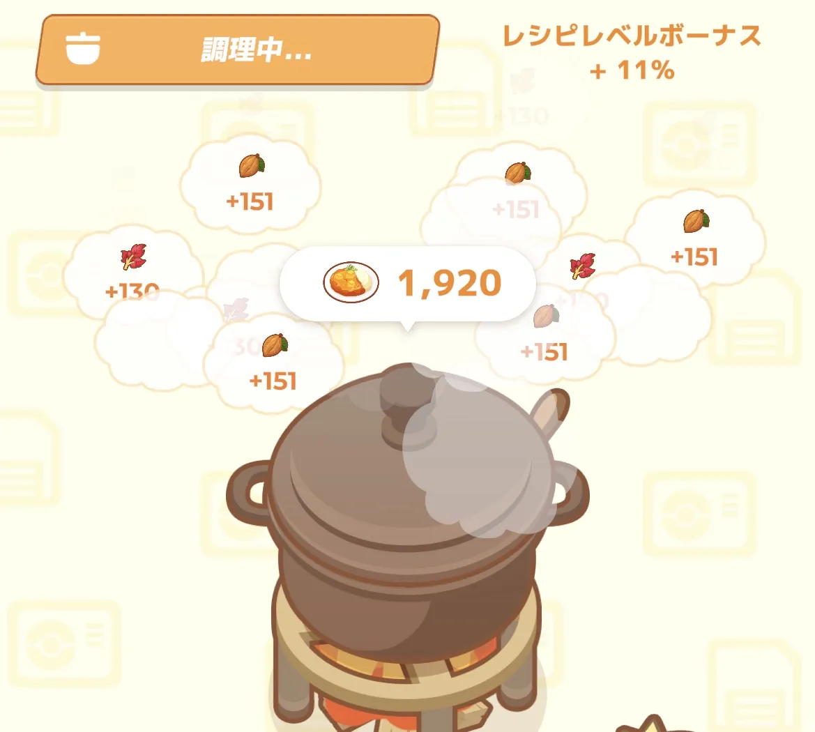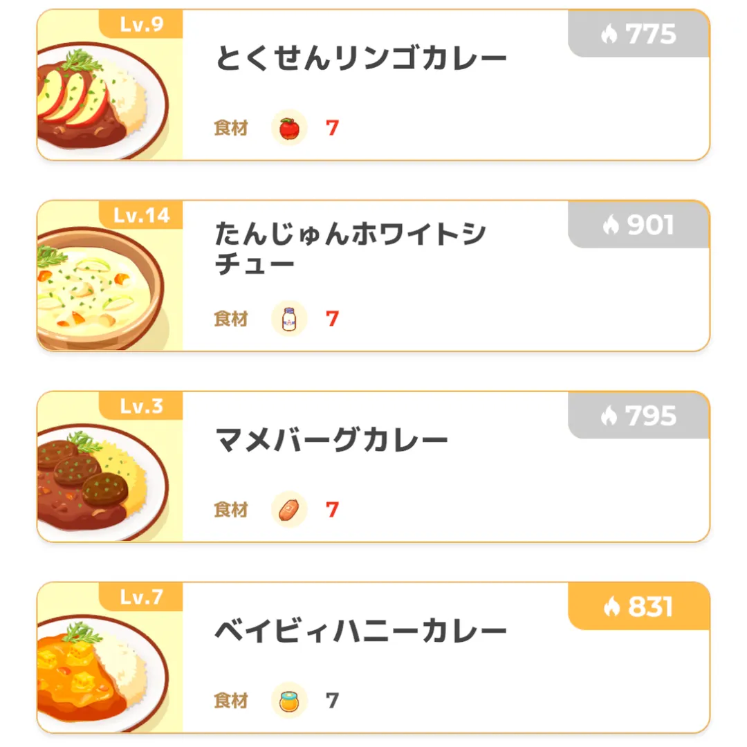 料理のレベルが上がると獲得できるエナジーの量も上がっていくので、毎回違う料理を作るよりも同じ料理を作り続けた方が効率的です。
