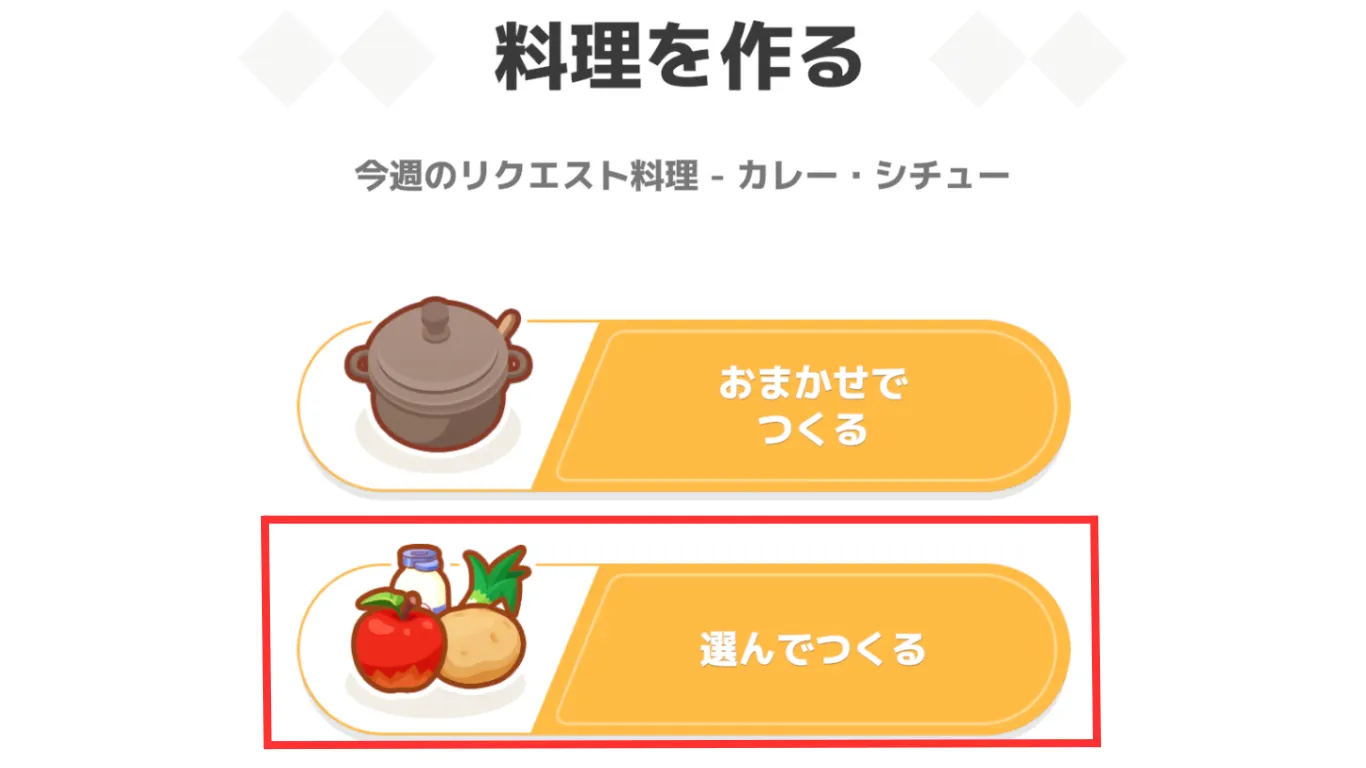 ポケモンスリープで作ったことのある料理のレシピは、料理を作る際に「選んで作る」を選択することで確認が可能です。