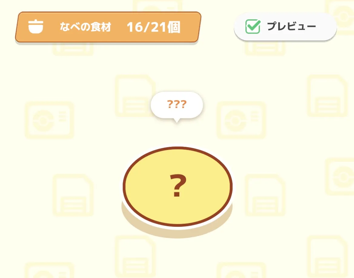ポケモンスリープで料理を作る際に「空のレシピ」から未開放レシピに対応した個数の食材を選択すると、プレビュー画面に「?」のアイコンが表示されます。
