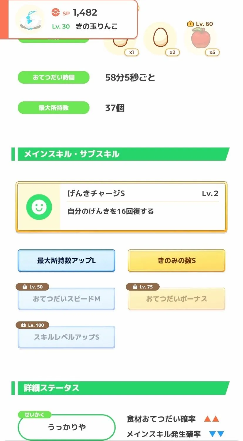 レアポケ厳選が難しい人はとりあえずリンゴ安定確保を目指しましょう。 AAコラッタやピカチュウくらい? ピッピもか。 なつき度をあげればナイトキャップピカもかなり戦力になります。 スタンプリセットという邪法もあるけど、カード枚数で特典来たときに泣かない人だけにしてください。