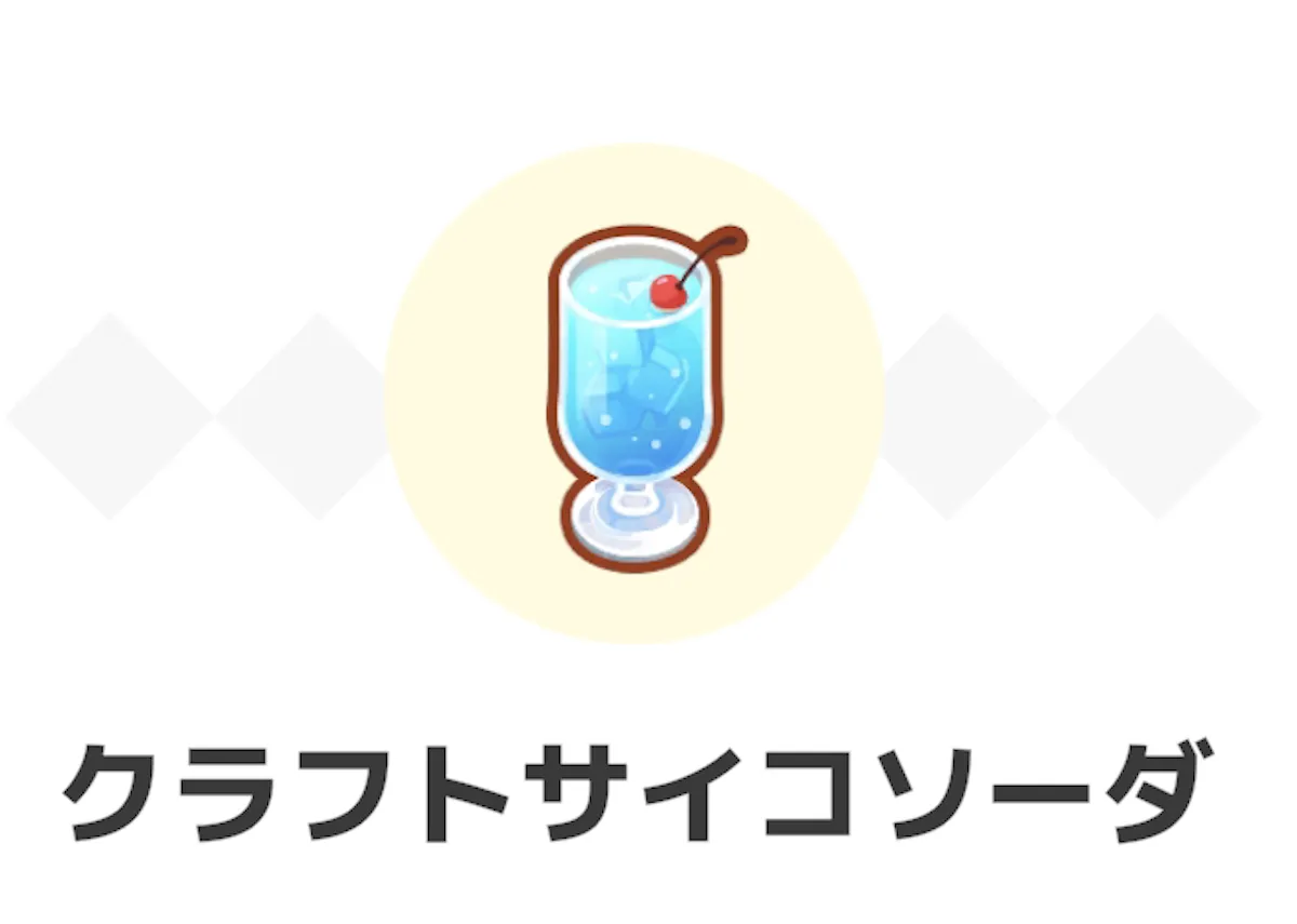 1種類目の【クラフトサイコソーダ】は、1種類の食材で作成できるデザート・ドリンクレシピの中で最も多くエナジーを獲得できます。