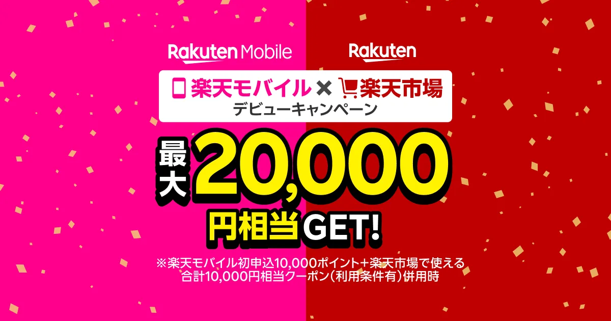 楽天モバイルと楽天市場、めて利用で最大20,000円相当のプレゼントキャンペーン開催!
