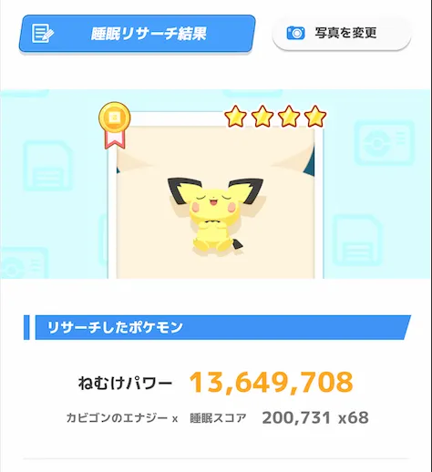 最終日には過去最高の1,364万のスコアを記録し、ピチューの⭐️4寝顔を入手することができた。