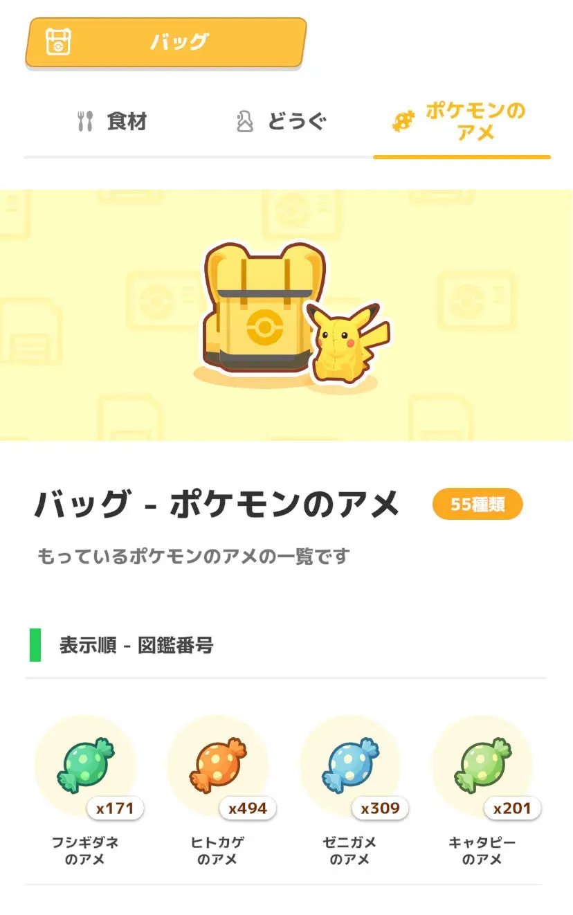 ポケモンスリープ### 【ポケスリ】5/14㈫アプデにて「ポケモンのアメバッグ機能」が追加!!未所持ポケモンの飴個数が確認可能に