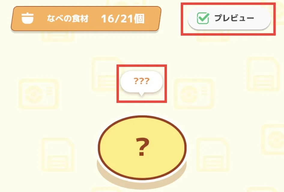 このときに「???」と料理名が表示されると、レシピに合う食材が選択できた証拠です。