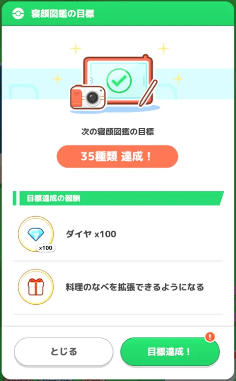 | 寝顔図鑑に多くの種類を登録することで、鍋の容量を増やせるようになります。 | |