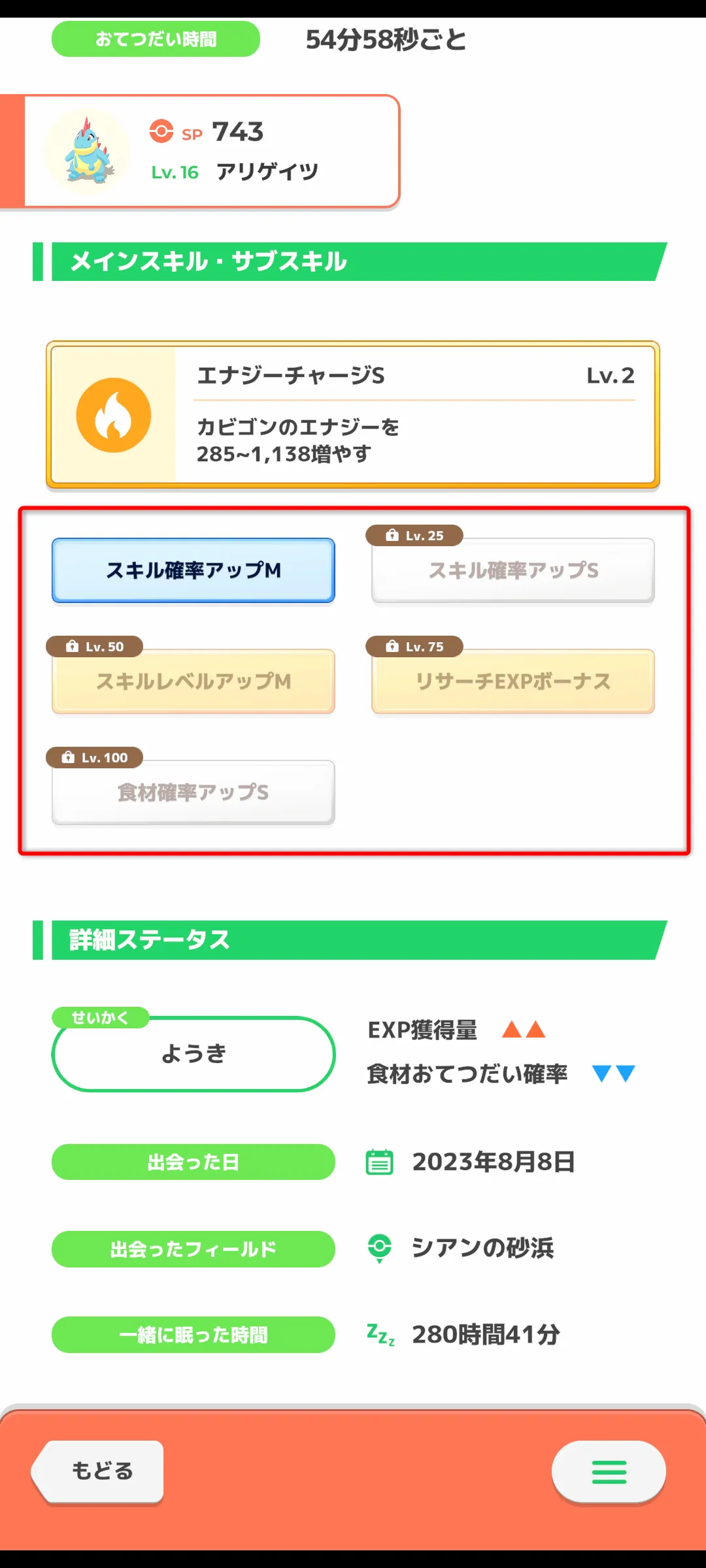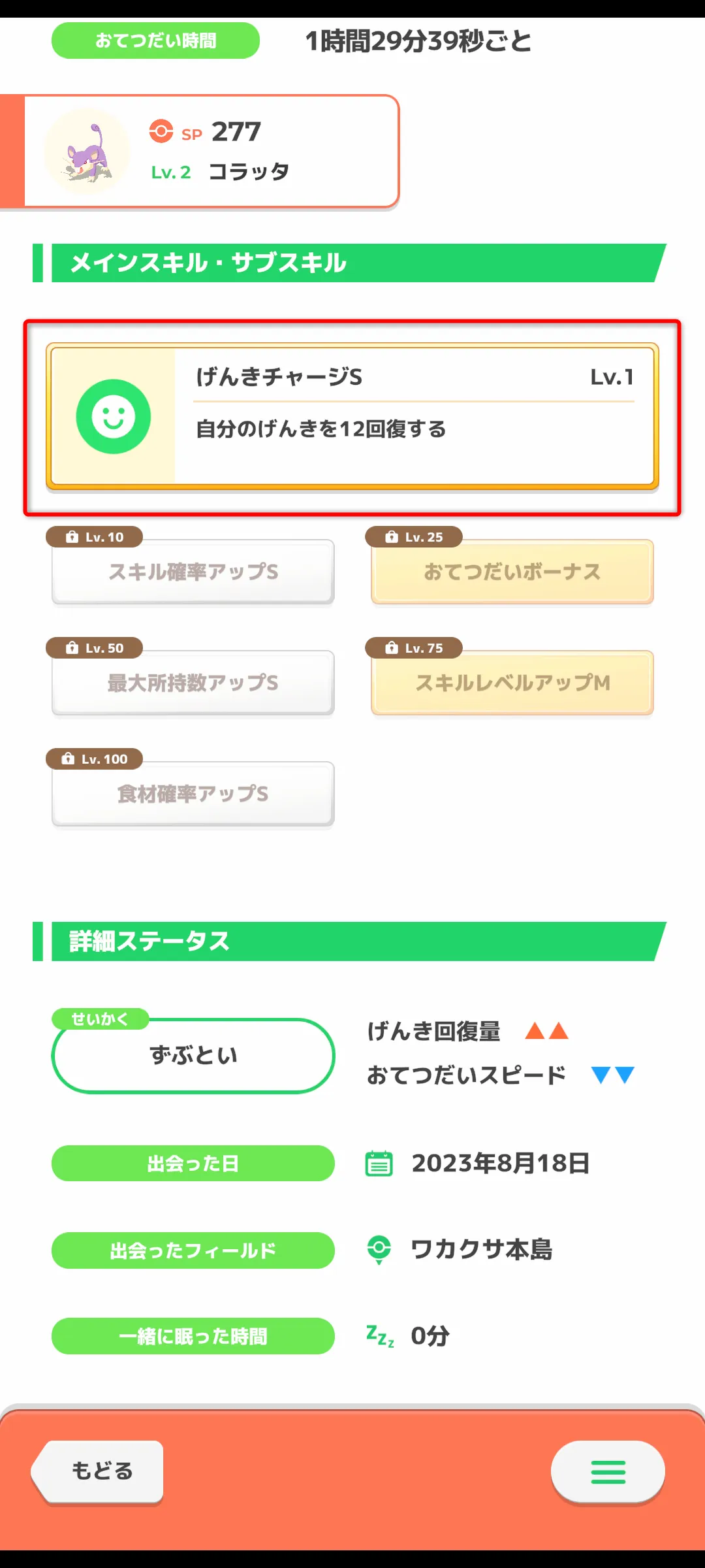 サブスキルはメインスキルやきのみや食材を効率よく獲得するサポートをしてくれるスキルです。
