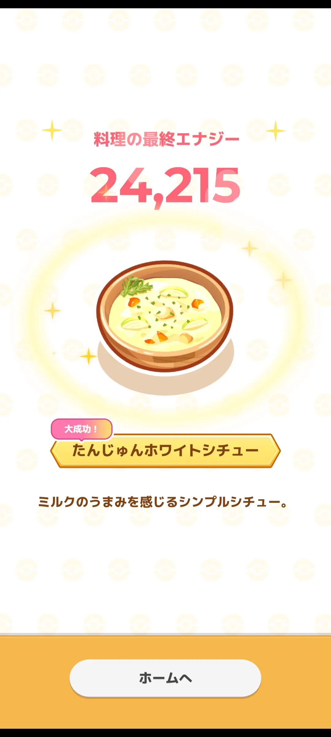 | 食材64個で大成功すると約24000エナジーを獲得できました! | |