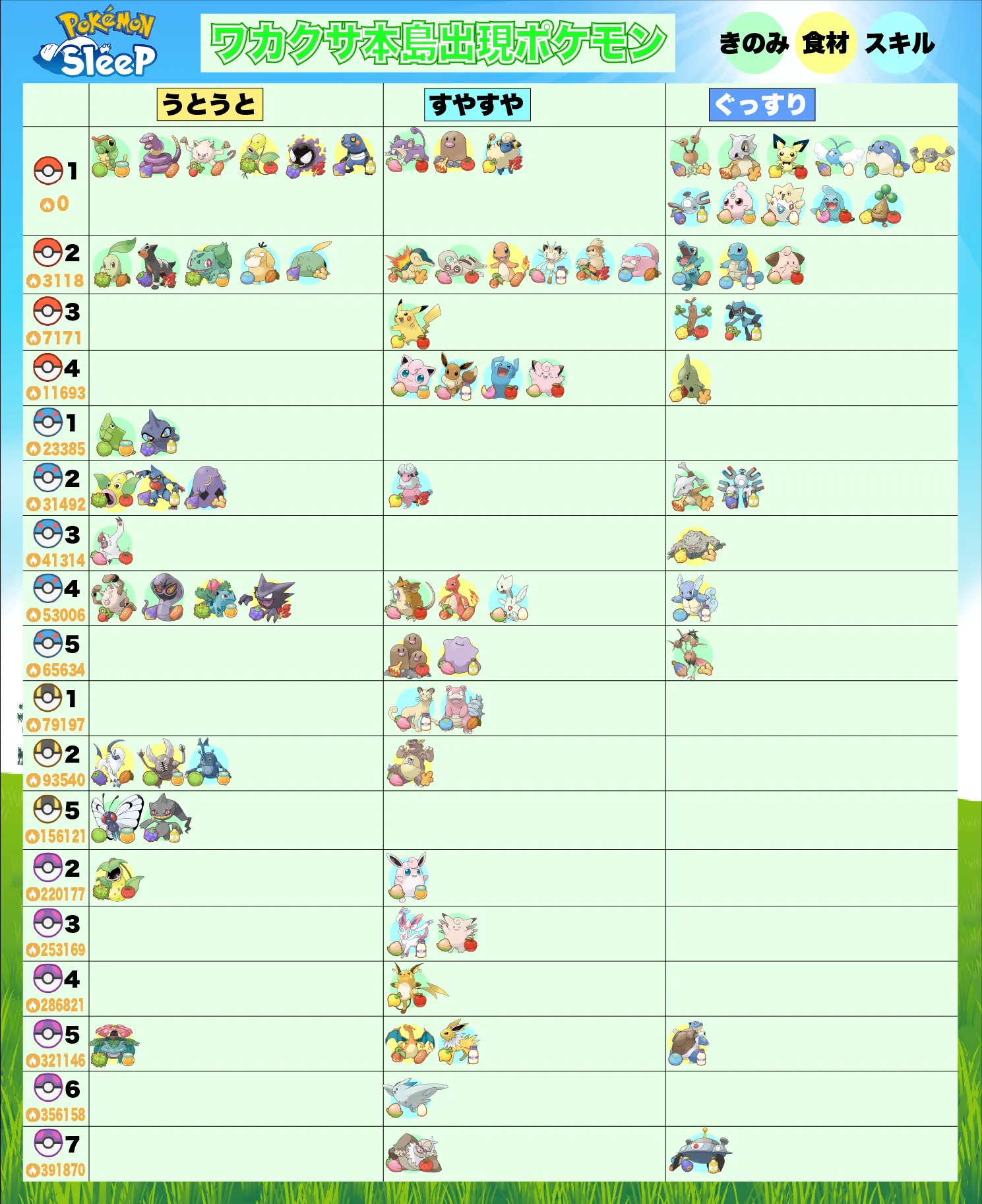 ポケモンスリープに登場する食材ポケモンの第三食材が解放された際の食材供給量をまとめてみました!ぜひ参考にしてください!
